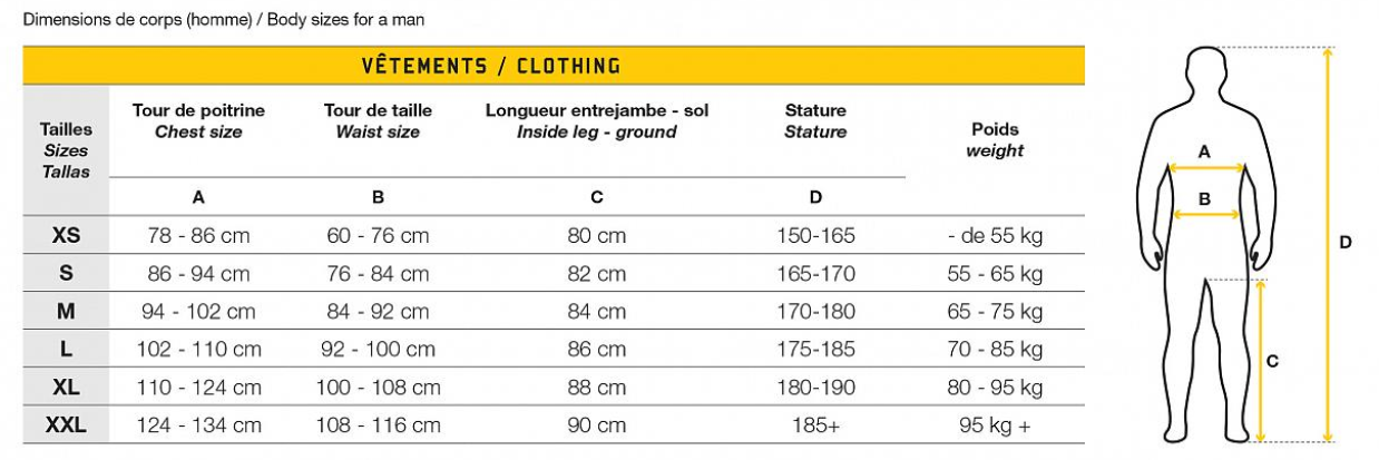 | XXL | From 95kg + | 14st 13lb to 15st |